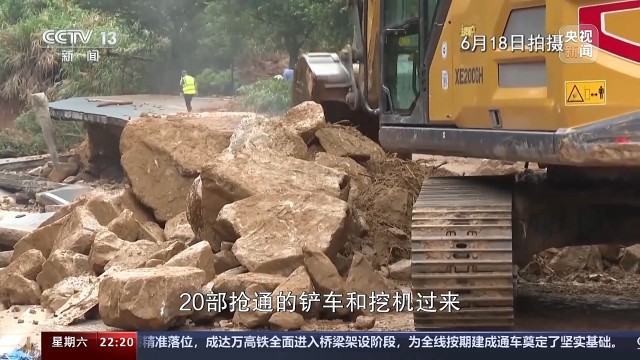 梅州市平远县地方公路管理站站长 陈毅:我们现在调了大约20部抢通的铲车和挖机过来,但是因为这个作业面,有上面的塌方,还有下面的边坡,这种掏空现象比较严重,我们不好操作,这些机械进度缓慢。