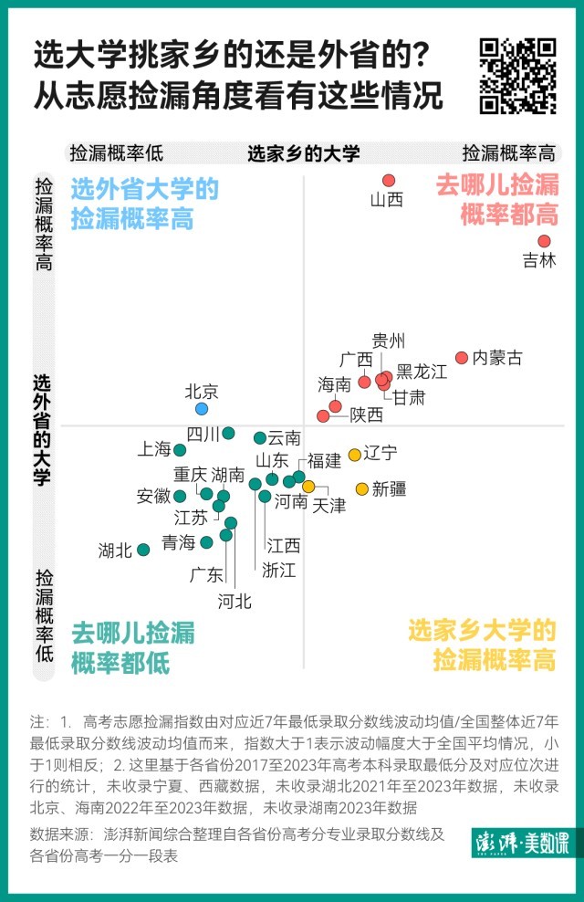 不过,这个捡漏率并不等同于各地考上大学或名校的概率,诸如北京、上海这些高校资源相对丰富的城市,在家乡选专业捡漏的概率,反而是显著低于全国平均水平的。