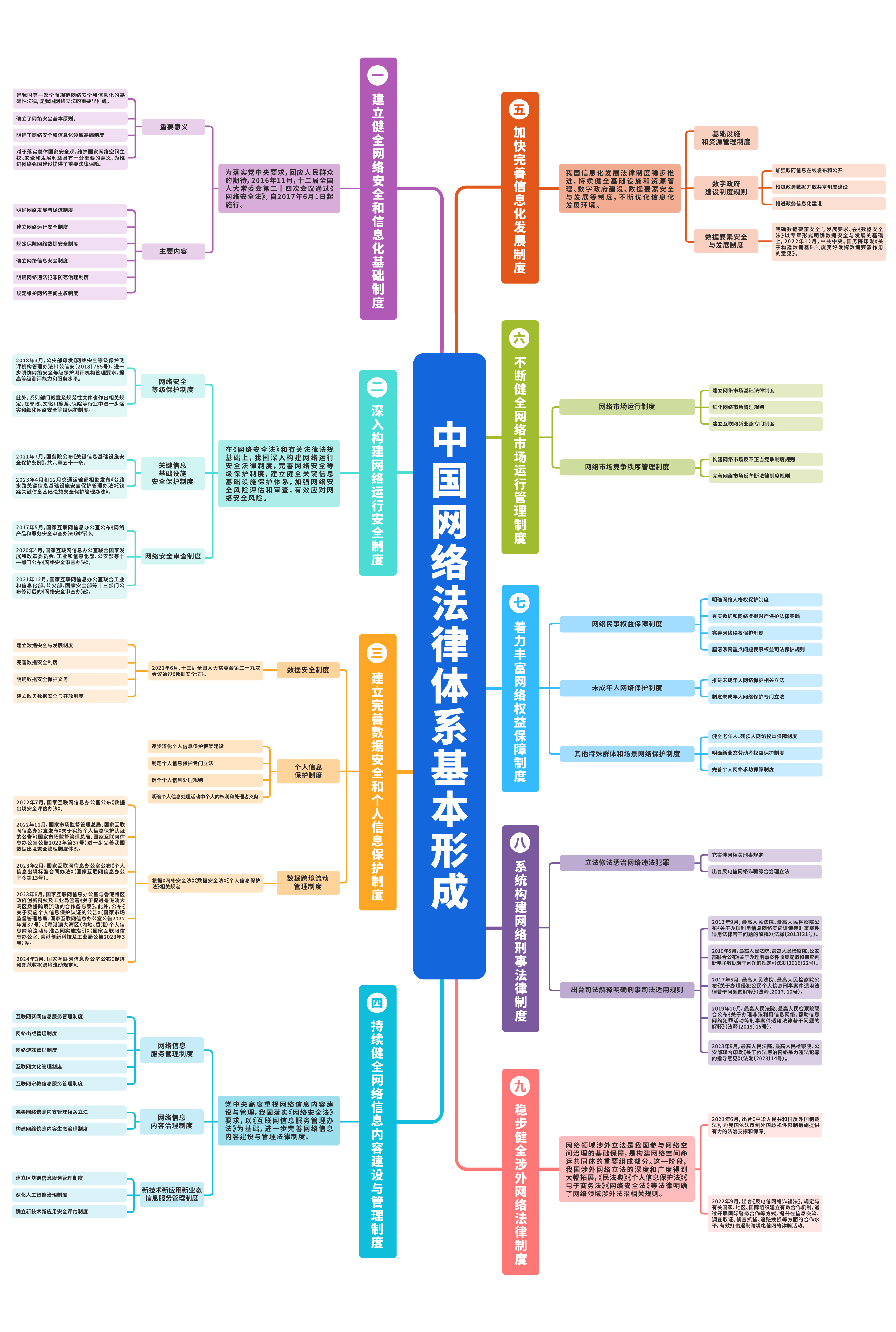 报告显示,中国坚持科学立法、民主立法、依法立法,把握互联网发展规律,大力推进网络法律制度建设。截至目前,中国制定出台了网络领域立法150多部,形成了以宪法为根本,以法律法规为依托,以传统立法为基础,以网络专门立法为主干的网络法律体系,搭建了中国网络法治的“四梁八柱”,为网络强国建设提供了坚实的制度保障。点击查看思维导图,看中国网络法律体系行稳致远。(见习记者 孙也婷 记者 刘洪侠 设计 朱钧有)