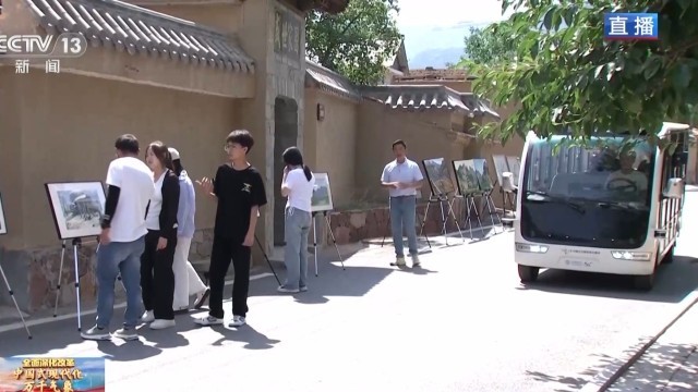 总台记者 胡晓冬:走在村里,第一感受就是这个村子已经闯进艺术圈了。我相信大家已经注意到我身后的画展,这些画展时不时会出现在小山村的大街小巷中,让艺术气息充满各个角落。