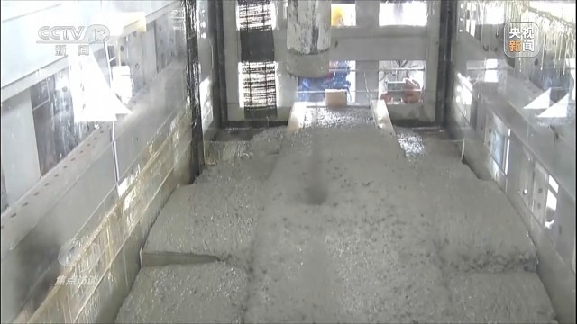 广东交通集团深中通道管理中心主任、总工程师 宋神友:一个标准管节165米长、46米宽、10.6米高,排水量达到8万吨,需要填充2.9万方混凝土,我们采用8台智能浇筑机器人,最后实现了最短29天高质量预制一节的目标,并且经过检测,接近99.95%的填充合格率水平,达到了世界最好水平。
