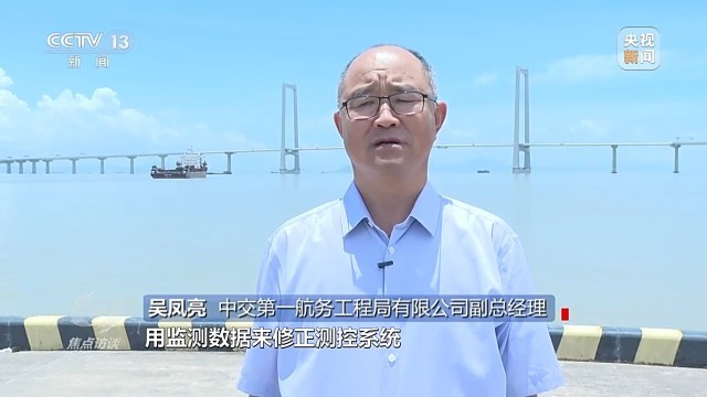 中交第一航务工程局有限公司副总经理 吴凤亮:同时,我们联合深圳大学开展沉管水下变形监测,用监测数据修正测控系统,进一步提高了安装精度。