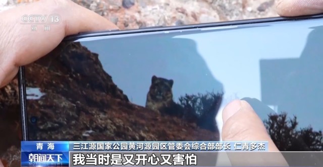 三江源国家公园黄河源园区管委会综合部部长 仁青多杰:悬崖边,我把头一伸,雪豹刚好就在这,我当时是又开心又害怕,它也不惊也不跑。