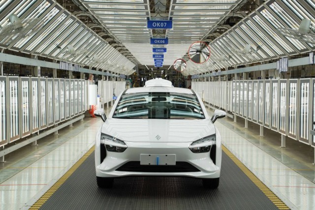 在位于江西省南昌市经开区的江铃集团新能源汽车有限公司生产基地拍摄的汽车生产流水线(2023年7月18日摄)。