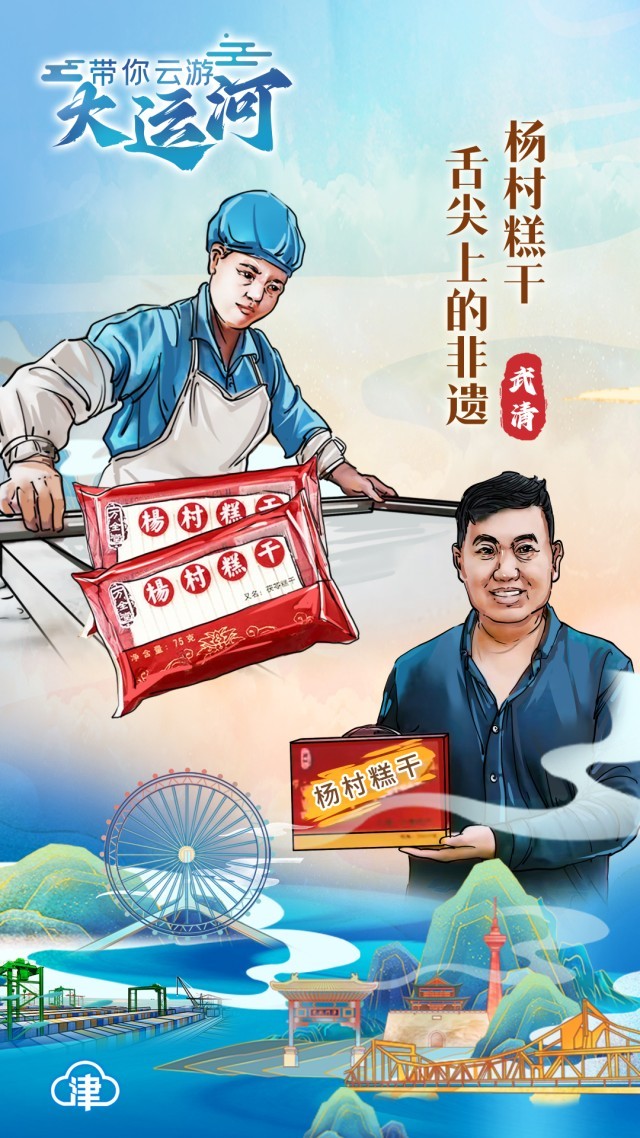 作为“流动的文化”,大运河不仅是文化传播的纽带,更推动了我国地区文化繁荣与创新。“南北舟车毕集,舟楫骈至辐辏”正是对当时繁盛情况的记录。人员流动让运河沿线名吃荟萃,形成了众多非遗美食。软糯醇香的杨村糕干作为武清区的美食代表之一,经历了时间的洗礼和食客的检验,得以流传至今。