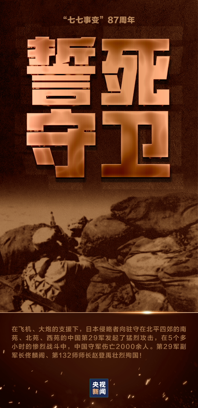 点蓝色字关注“央视新闻”87年前的今天永不敢忘!1937年7月7日,卢沟桥畔一声枪响,拉开全民族抗战的序幕。中华儿女浴血奋战、救亡图存,
