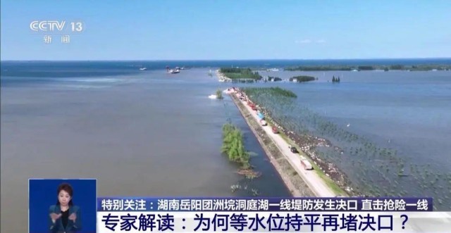 目前,洞庭湖大堤决口封堵有3个有利条件: