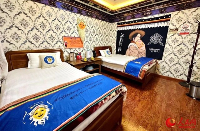 推开雕梁画栋的藏式门楣,客房收拾得干净整洁,茶歇处、淋浴室一应俱全。不少民宿还在墙上挂起了黄面具等装饰物,藏戏元素随处可见。根植于积淀厚重的藏戏文化,无数游客慕名而来,大家致富路子更宽了。