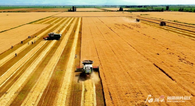 天山南北麦浪滚滚穗飘香