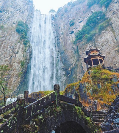 浙江温州市文成县有多处历史悠久的传统村落。图为文成县百丈漈镇篁庄村百丈漈瀑布。