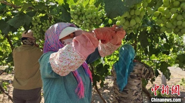 中新网乌鲁木齐7月8日电 (彭晨)“现在主推的葡萄品种还是红提葡萄,它的个头大,汁水饱满,甜度也高,最主要是耐储存,适合长途运输。”致富带头人、新疆生产建设兵团第十二师头屯河农场二连职工雷小锋说。