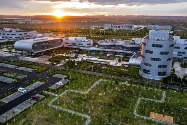 从空中俯瞰克拉玛依云计算产业园区(2021年8月13日摄)。新华社发(闵勇 摄)