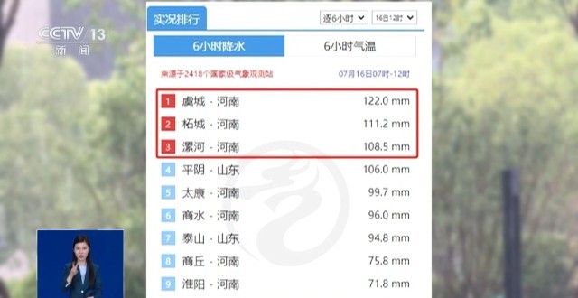 今天6点到12时,河南站点(虞城、柘城、漯河)占据全国6小时雨量榜前三,特别是河南虞城降雨量达到了122毫米,排名第一。此外,从今天的气象雷达回波来看,河南到山东一带,维持西南向东北走向的对流回波,大气对流性突出。所以到今天夜里,强降雨雨带还会在这里维持。