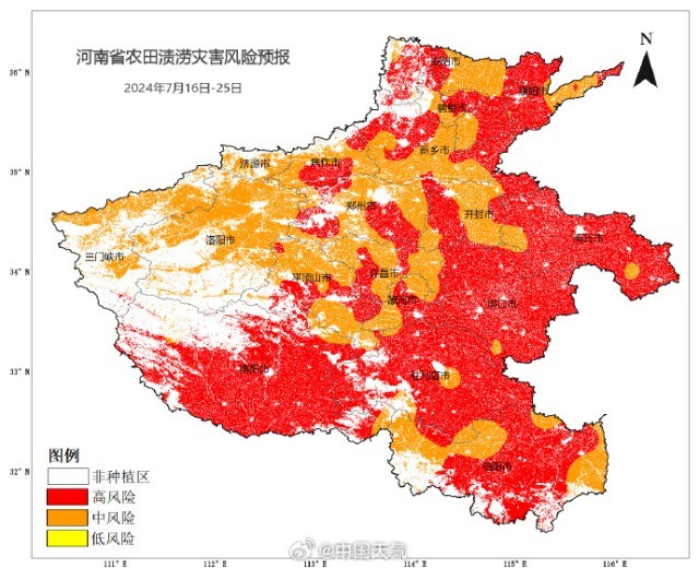 >>昨天,河南已拉响最高级别的暴雨红色预警,河南省气象局、河南省农业农村厅联合升级发布农田渍涝灾害高风险预警,预计未来10天河南降水持续时间长、累计雨量大、暴雨落区重叠度高,且有一定极端性,全省大部农田渍涝灾害风险较高。