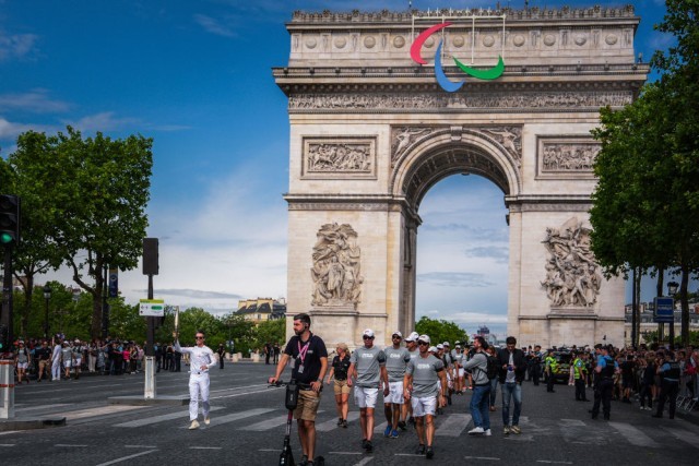 7月15日,奥运会火炬在巴黎传递。新华社记者 许畅 摄