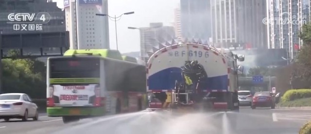 22日,江西省平均最高气温达到了39摄氏度,赣州会昌、抚州临川等地启动了高温天气环卫作业应急预案,增加洒水车、雾炮车作业频次,给城市降温降尘。在九江市,当地不间断对主次干道进行洒水降温,并及时调整作业劳动和休息时间。