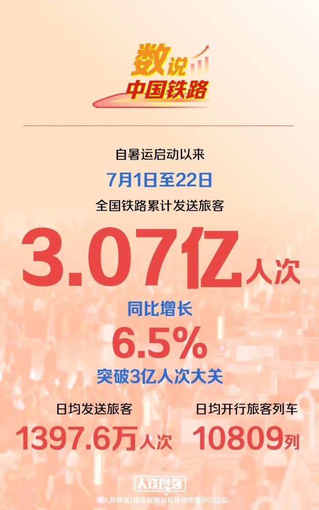 全国铁路累计发送旅客3.07亿人次