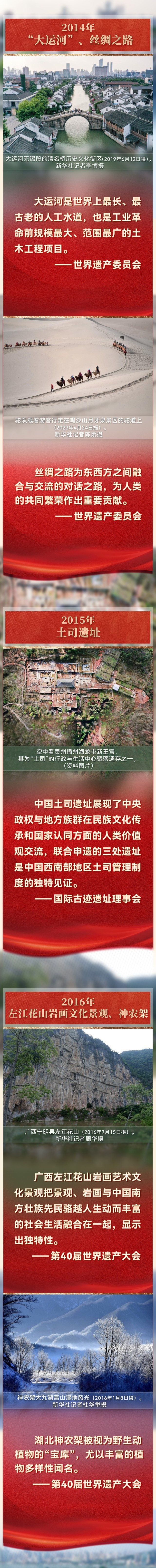 中国是世界遗产类别最齐全的国家之一。2014年以来,中国共有14个项目被列入《世界遗产名录》。让我们一起看看,近几年来有哪些“世界遗产”来自中国——