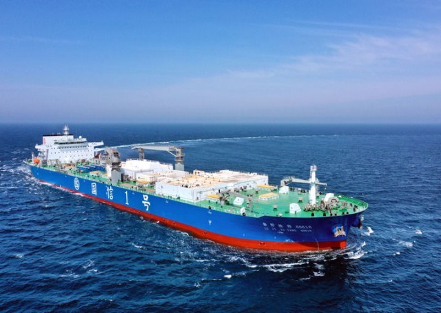 大型养殖工船“国信1号”在海上作业(资料照片)。新华社发(青岛国信集团供图)