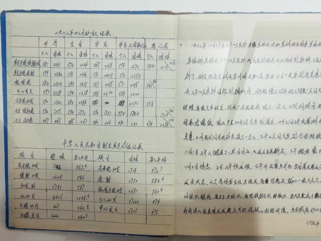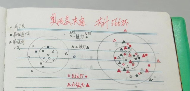 安徽省体育博物馆内,许海峰日记中手绘的成绩复原图。新华社记者 周畅 摄
