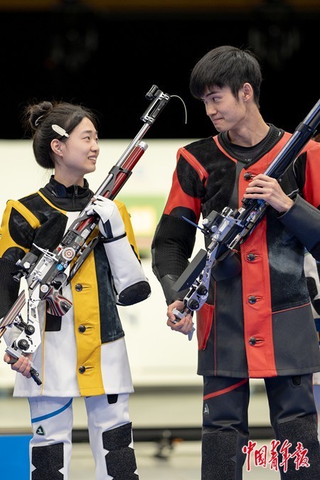 拿下本届赛会首金后,“阿条姐”和“干饭哥”就成了社交网络上“黄雨婷”和“盛李豪”的代称,解锁的“密码”是他们非常符合00后特质的社交账号名,尤其盛李豪的账号名称“光靠干饭就”迅速走红,在他夺得男子10米气步枪冠军后,被媒体和网友用热梗注解:“光靠干饭就”赢了两金。