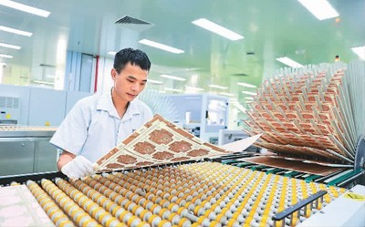 日前,江西省九江经济技术开发区九江明阳电路科技有限公司生产车间内,工人正在忙着生产专供出口的PCB板。魏东升摄(人民视觉)