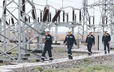哈萨克斯坦谢列克风电项目是中国电建集团在中亚地区投资的首个新能源项目,也是中哈高质量共建“一带一路”的标志性项目。图为不久前,中哈两国工作人员正在进行巡检。新华社记者 白雪骐摄