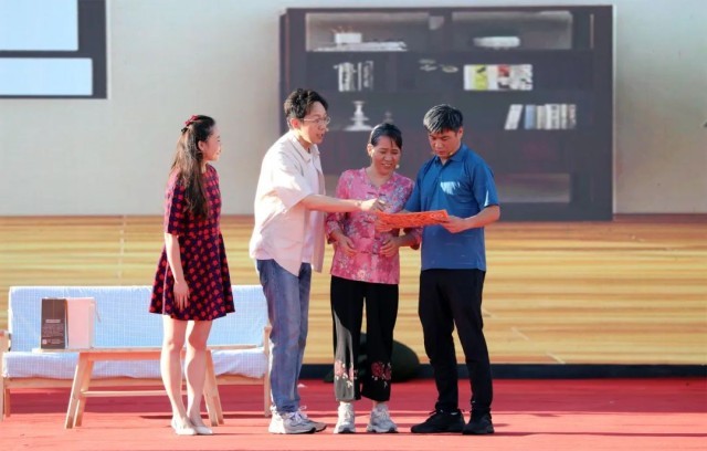 全国道德模范代表为“中国好人”代表赠送“道德传家宝”。周胜武 摄