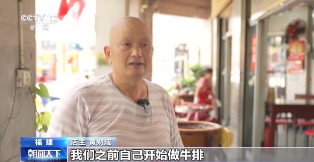 店主 黄财成:一百多年前国外的人来泉州经商,基本上都是吃牛肉的。我们之前自己开始做牛排、牛肉羹、牛杂。当年我爷爷去南洋帮厨,再来到我们这边改良,特别是华侨大学的留学生,周六周日都来我们这家店吃。