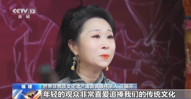 世界非物质文化遗产南音省级传承人 庄丽芬:现在有更多的外地观众、年轻观众非常喜爱追捧我们的传统文化,中华优秀传统文化得到更多人的喜爱,这也是文化自信的一种体现。