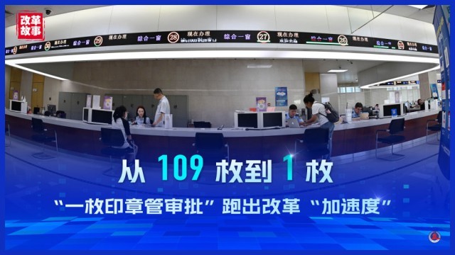 ↑散落在18个单位的216项审批职责归至1个部门后,109枚公章也被这一枚行政审批专用章所取代。