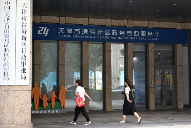 市民步入天津市滨海新区政务服务中心(7月30日摄)。
