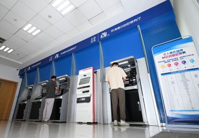 在天津市滨海新区政务服务中心,市民在自助服务厅内使用自助终端办理业务(7月31日摄)。