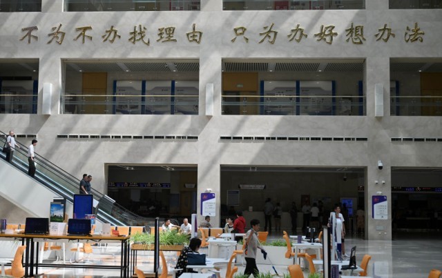 市民在天津市滨海新区政务服务中心大厅内办理业务(7月31日摄)。