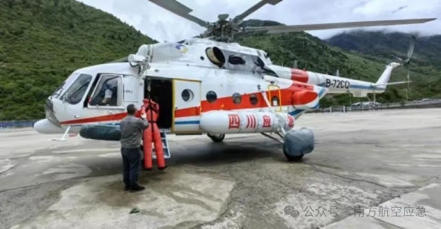 灾情发生后,应急管理部南方航空护林总站高度重视,指令下属的成都站立即进入战备状态,做好航空救援一切准备。根据四川省、甘孜州应急管理部门要求,成都站迅速派出康定基地一架M-171和淮州基地一架AW-109直升机开展空中侦察和索降救援。