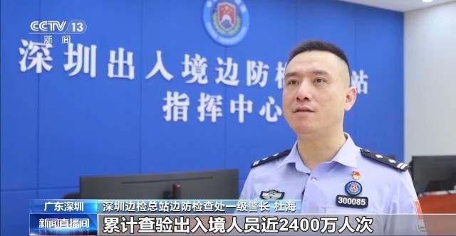 深圳边检总站边防检查处一级警长 杜海:7月以来,深圳边检总站累计查验出入境人员近2400万人次,其中8月4日出入境人员更是高达92.18万人次,再创全面复关以来的历史新高。同时,受免签范围扩大等扩大开放政策影响,7月深圳入境外国人达21万人次,其中9.5万人次来深旅游,更多外国朋友来华打卡“中国行”。