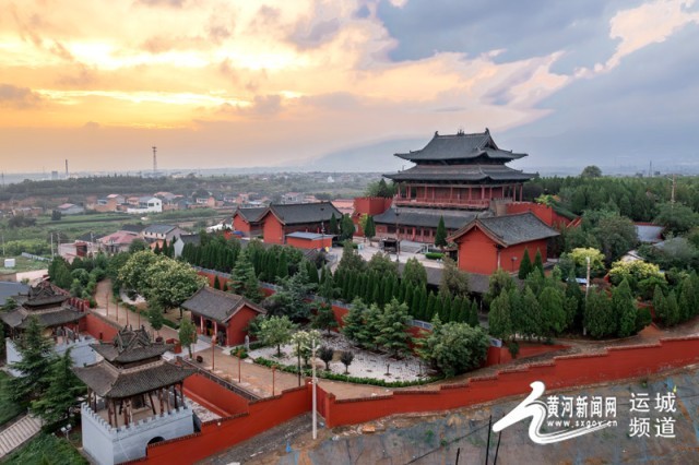 图为落日余晖下的稷山大佛寺。