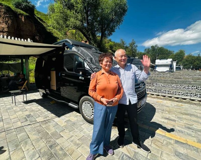 8月9日,宁夏回族自治区固原市隆德县陈靳乡新和村房车营地,来自四川成都的房车友杨宏明、喻群芳夫妇。中青报·中青网记者焦敏龙/摄