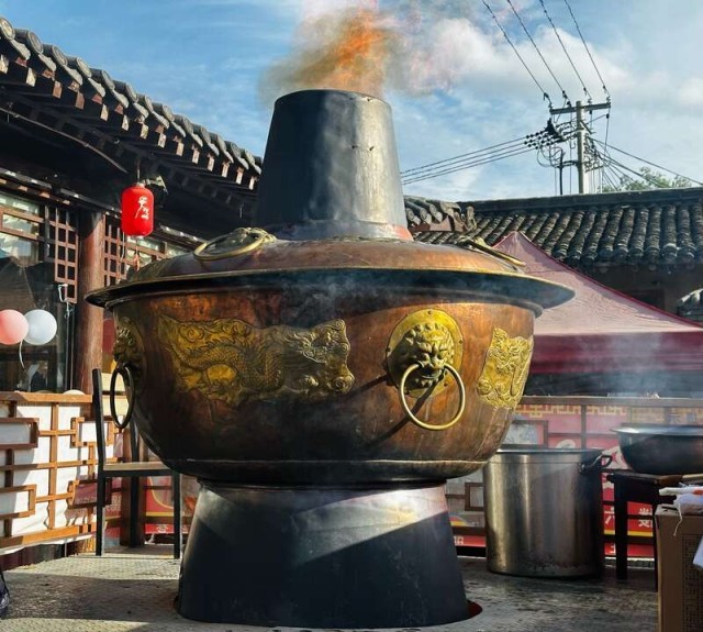 8月9日下午,宁夏回族自治区固原市隆德县老巷子古村落民俗文化旅游区向游客推出暖锅宴。中青报·中青网记者焦敏龙/摄