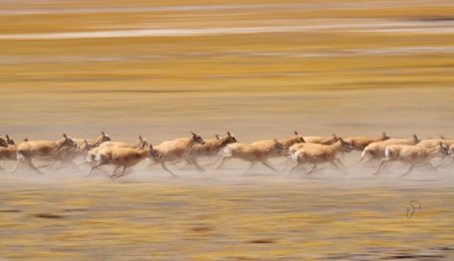 2024年6月13日,在羌塘国家级自然保护区,迁徙中的藏羚羊奔跑起来。新华社记者费茂华摄