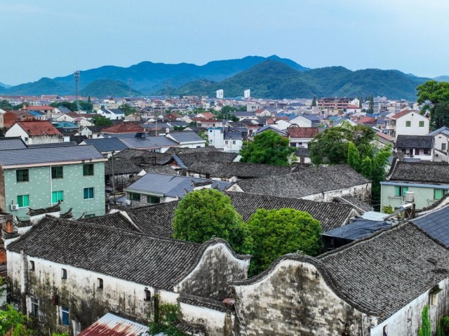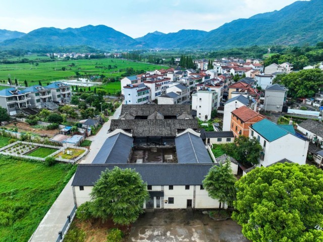 这是8月14日拍摄的诸暨市赵家镇花明泉村内的古宅院(无人机照片)。
