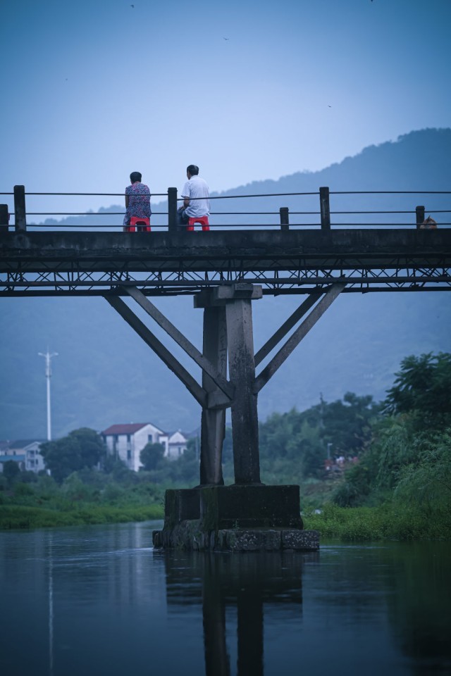 8月14日夜,诸暨市赵家镇花明泉村村民在村口跨越黄檀溪的桥上乘凉。