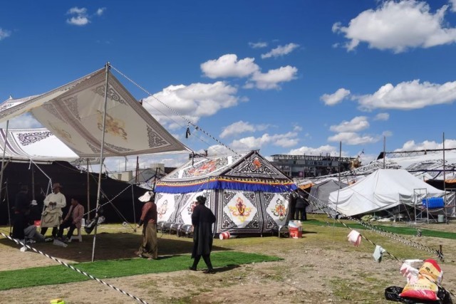 就在赛马场外,来自各地的游客走进牧民搭起的帐篷、过起盛大的“林卡”(郊游野餐)。在帐篷朗玛厅里跳那曲锅庄、在帐篷咖啡厅里品藏北美食,游客在这里可以体验牧民传统又现代的生活。