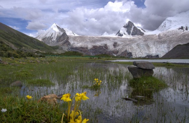 夏日的萨普雪山和山麓湿地静谧壮美。新华社记者 姜帆 摄