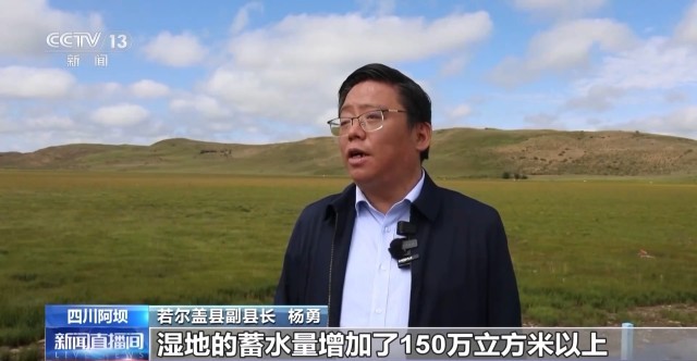 若尔盖县副县长 杨勇:在修复和保护上下功夫,完成了湿地修复11万亩、湿地封禁40万亩,我们若尔盖县的生态本底不断地向好,草原盖度达到了85%以上,湿地的蓄水量增加了150万立方米以上。