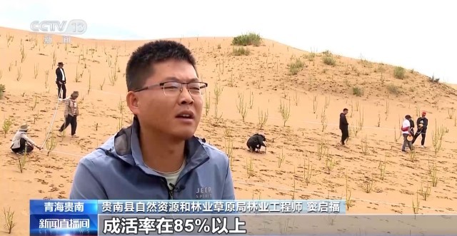 贵南县自然资源和林业草原局林业工程师 窦启福:在技术上采取的是深栽造林技术,从近三天的抽样调查结果来看,成活率在85%以上,符合作业设计要求,下一步我们将做好管控工作和补植补栽工作。