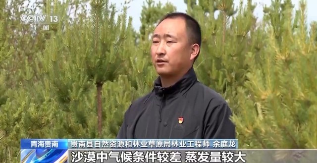 贵南县自然资源和林业草原局林业工程师 余庭龙:通过近几年的科研调查发现,沙漠中气候条件较差,蒸发量较大,导致一些青杨和乌柳出现了退化情况。我们与科研单位合作,进行了八十亩的实验性针叶树种的补栽工作,主要采用的树种是樟子松、云杉,实验已进行了四年,从目前的生长来看,成活率较高。下一步,我们计划在全县的防沙治沙成效区进行大规模种植。