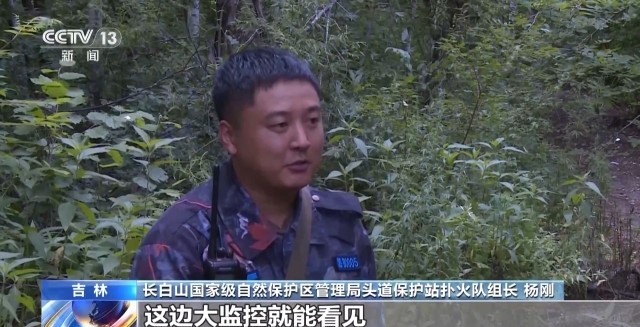 长白山国家级自然保护区管理局头道保护站扑火队组长 杨刚:现在各个入山点都有监控,比方说人往里一进,这边大监控就能看见,我们就可以奔那个坐标点去,进去搜索,很精准。