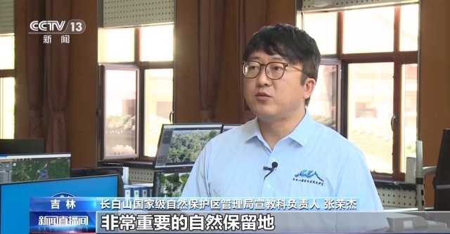 长白山国家级自然保护区管理局宣教科负责人 张荣杰:长白山不仅仅是一个非常重要的自然保留地、野生动植物的栖息地,它还是整个东北亚的生态屏障。保护好长白山的一草一木,保护好长白山的生物多样性,对于吉林省以及其他地区的自然状况的可持续发展,是有非常重要的意义的。