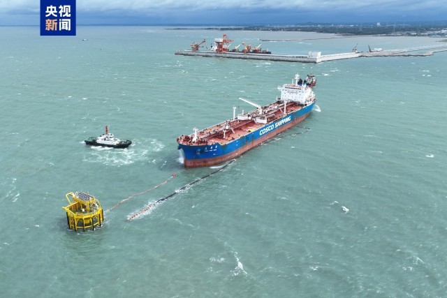 17日上午,“天鹰座”轮在徐闻海事处“海巡0927”船的护航下,进港航行至乌石终端原油外输单点水域,并安全顺畅系泊在单点装置上。海事执法人员督促作业方提前布设围油栏,严防油轮提油作业污染海洋环境。经过一轮作业,18日,原油外输正式完成。本航次装载的30000方、合约2.5万吨的原油送往海南八所港,货油价值约1亿元人民币。
